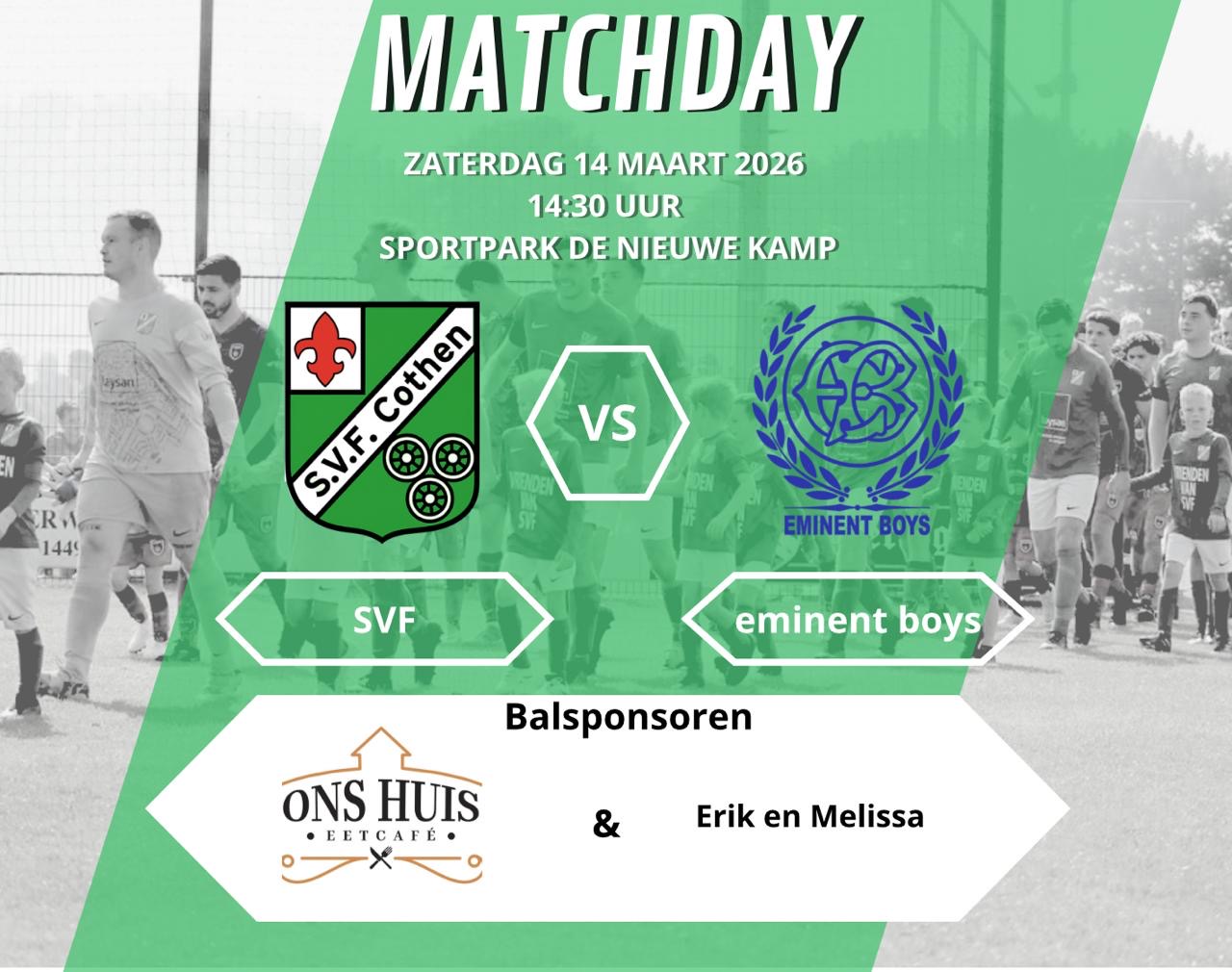 Zaterdag 14 maart SVF 1 – Eminent boys 1 aftrap 14:30u
